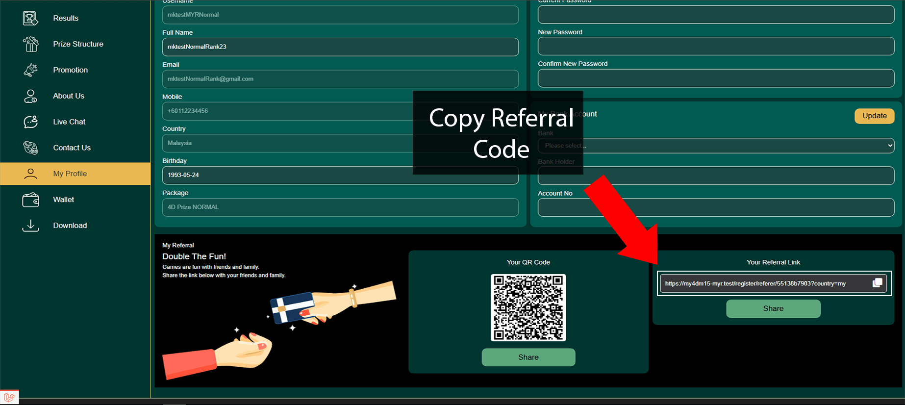 • After done logging in, press My Referral to get a link or QR Code.